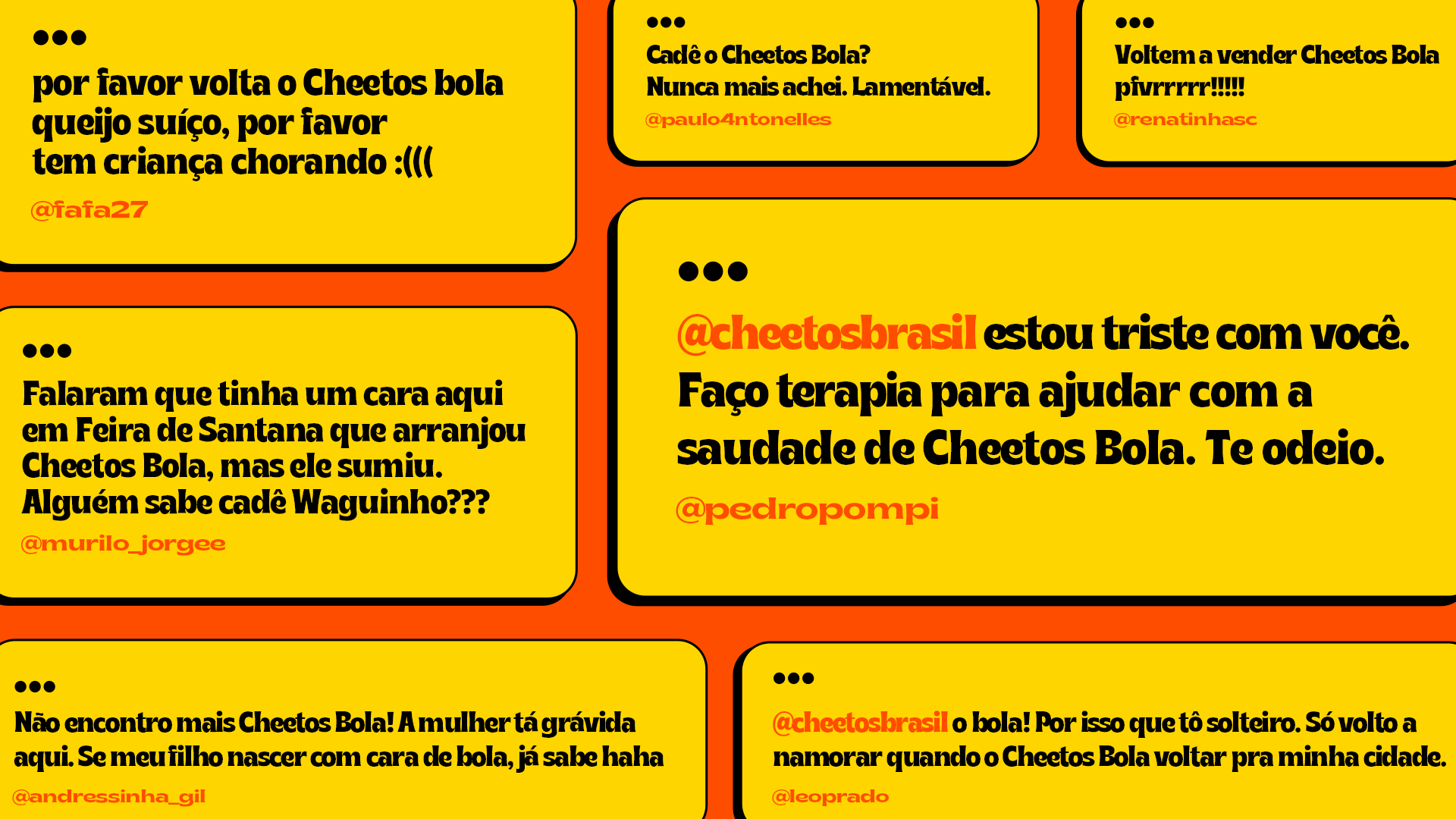 So when it finally did, we drew inspiration from their own dramatic comments and turned them into intense, over-the-top telenovelas announcing, at last, that the drama was finally over. Cheetos Bola was back.